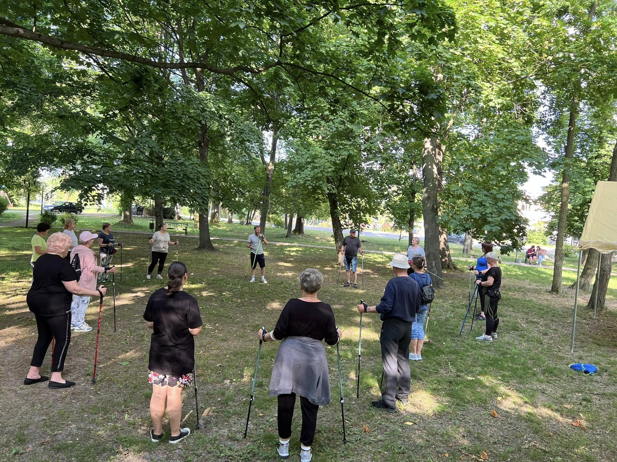 Seniorzy mogą także uczestniczyć w grupowych zajęciach rekreacji ruchowej.